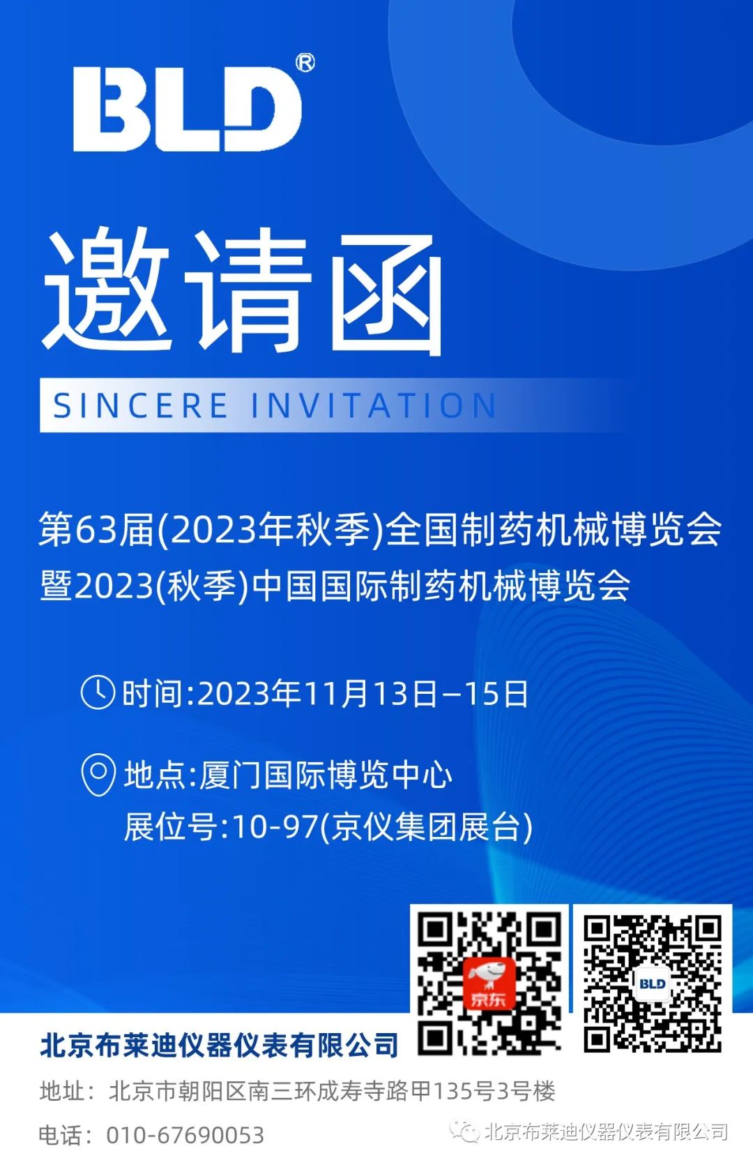 第63屆(2023年秋季)全國制藥機(jī)械博覽會(huì)暨2023(秋季)中國國際制藥機(jī)械博覽會(huì)將于2023年11月13—15日在廈門國際博覽中心舉辦,北京布萊迪將以“京儀集團(tuán)”整體形象與兄弟單位組團(tuán)參展。在此,我們誠摯邀請您出席此次展會(huì),屆時(shí),我們將以新穎的產(chǎn)品、創(chuàng)新的整體解決方案呈現(xiàn)模式,共同詮釋“國產(chǎn)自主研發(fā)儀表專注于醫(yī)藥行業(yè)提供的自動(dòng)化產(chǎn)品解決方案”。